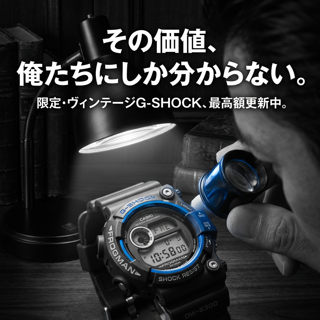 • そのG-SHOCK、本当の価値で評価されていますか? 限定モデル・ヴィンテージの価値は、一般のリサイクルショップでは決して判別できません。ショックマニアは、G-SHOCKの歴史と市場性を熟知した「プロ中のプロ」が、あなたのコレクションを一点一点、真剣に鑑定。
