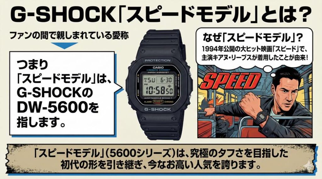 つまりスピードモデルは、G-SHOCKのDW-5600を指してます。
